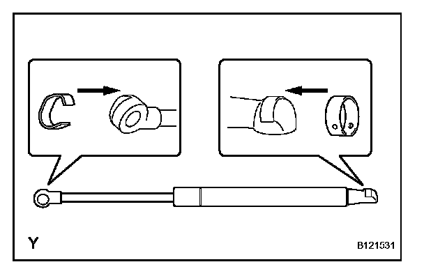 a. Using a screwdriver with its wrapped in protective tape, remove the 2 stop rings and stay.