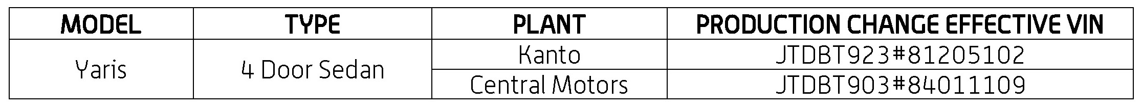 PRODUCTION CHANGE INFORMATION: