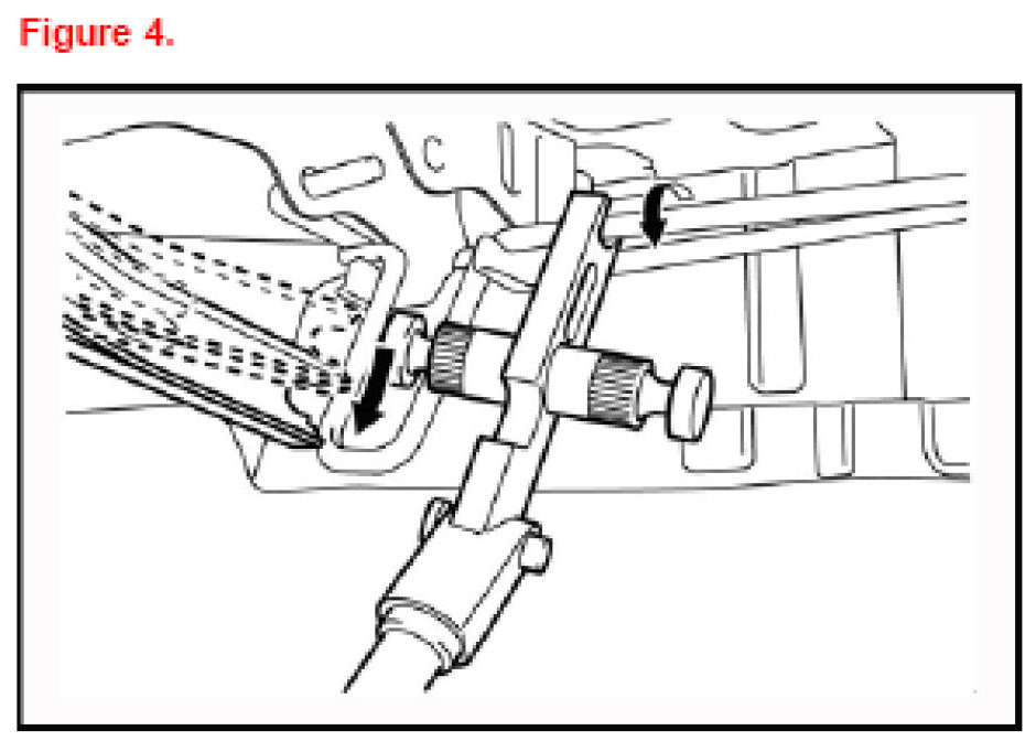 3. Push down on the SST tool and install the torsion bar to the LH hinge arm.
