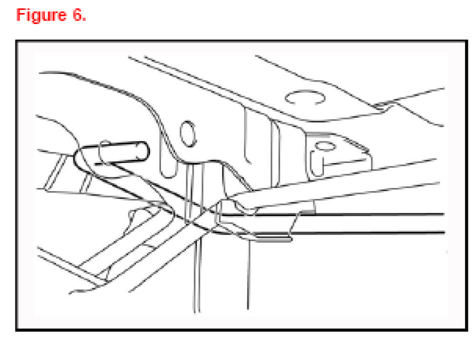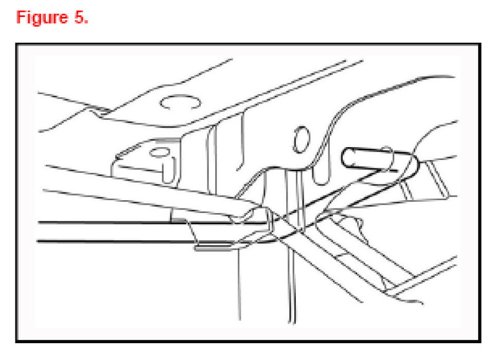 4. Install the RH trunk lid hinge torsion bar to the clip on the center of the upper back panel. Install LH hinge torsion bar.