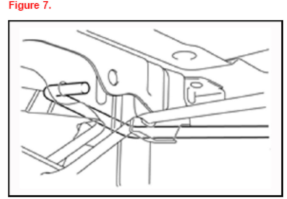 4. Pull the SST tool toward you and disengage the U-shaped section from the LH hinge support.