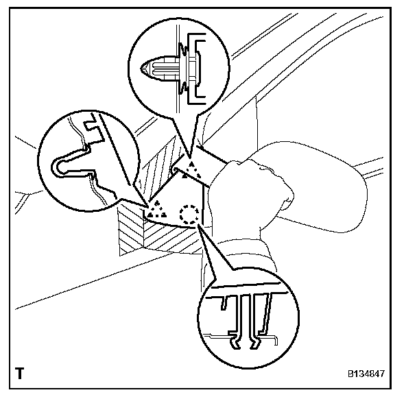 a. Engage the 2 clips and the claw and install the front pillar upper cover.