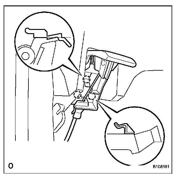 a. Disengage the 3 claws and separate the hood lock control lever.