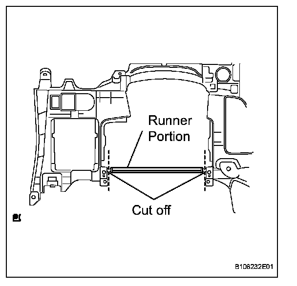 a. Using a nipper, cut off both ends of the runner portion shown in the illustration (When installing a new one).