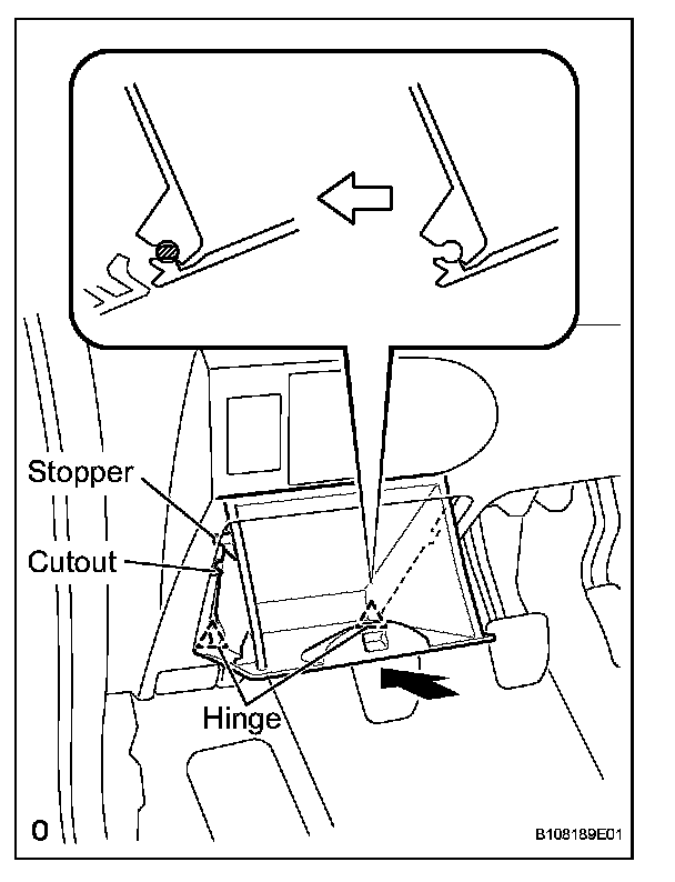a. Insert the stopper of the instrument panel box from the cutout of the instrument panel lower.