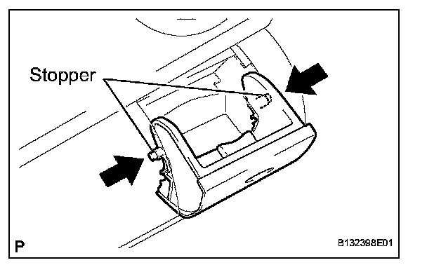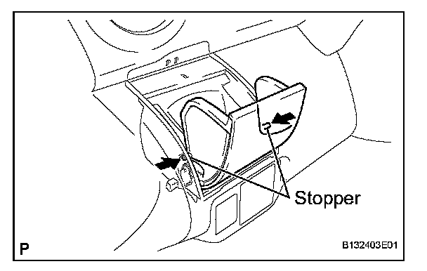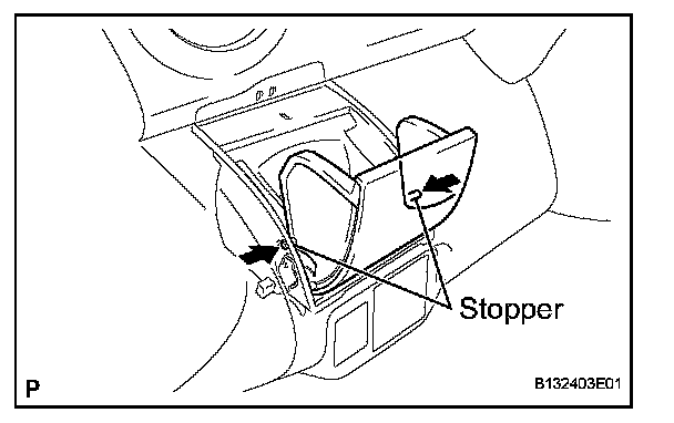 b. Flex both sides of the instrument panel cup holder and disengage the 2 stoppers.