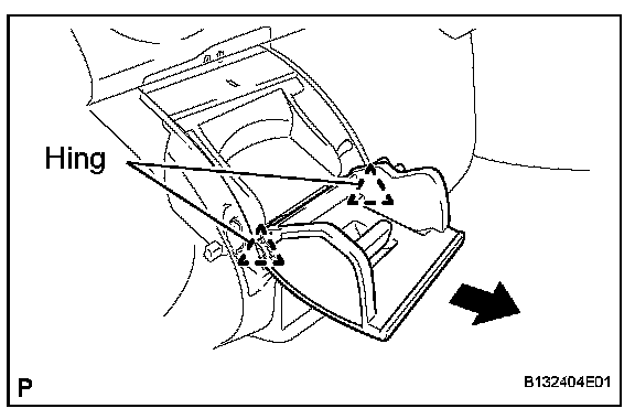 b. Pull the instrument panel box out horizontally with the instrument panel open and disengage the 2 hinges.