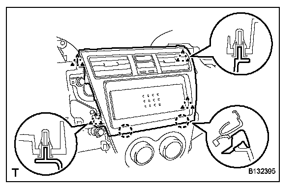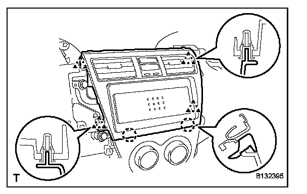 a. Disengage the 2 claws and 4 clips and remove the instrument cluster panel center.