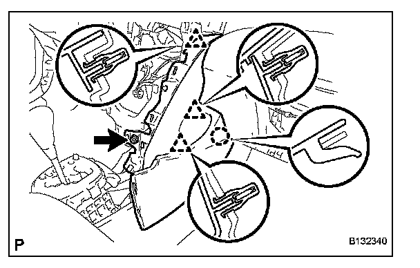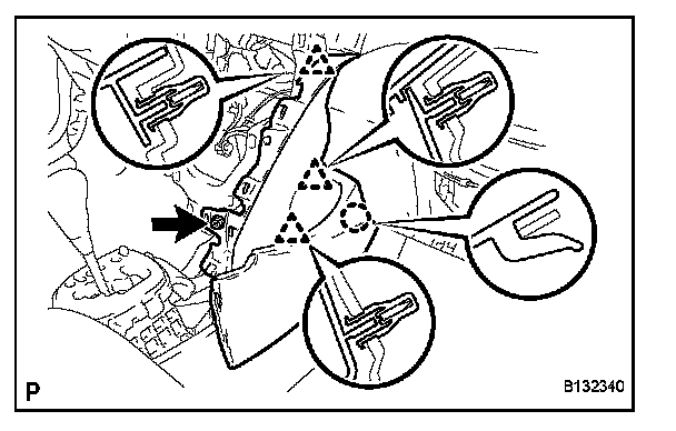 b. Disengage the claw and 3 clips and remove the instrument panel pad lower.
