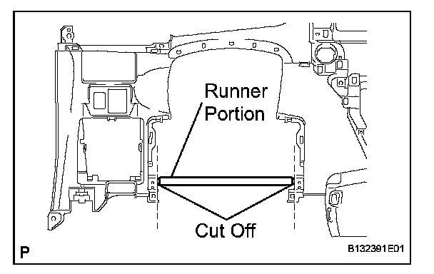 a. Using a nipper, cut off both ends of the runner portion shown in the illustration (When installing a new one).