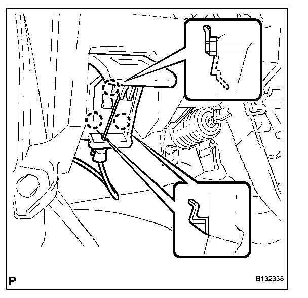 a. Disengage the 3 claws and separate the hood lock control lever.