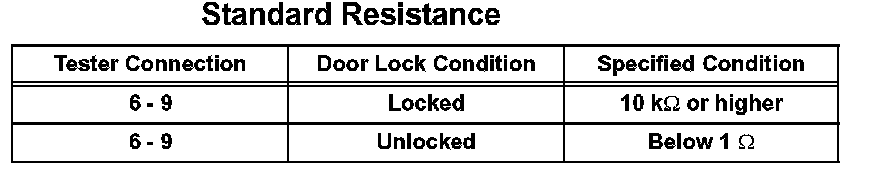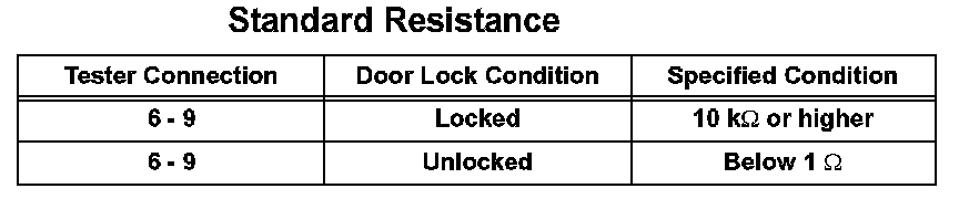 If the result is not as specified, replace the rear door lock.