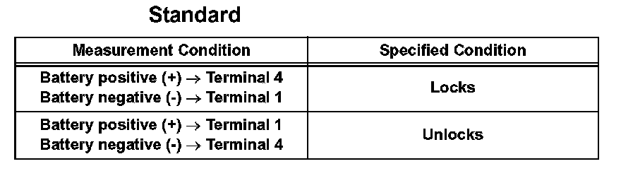 1. Apply battery voltage to the rear door lock and check the operation of the door lock motor.