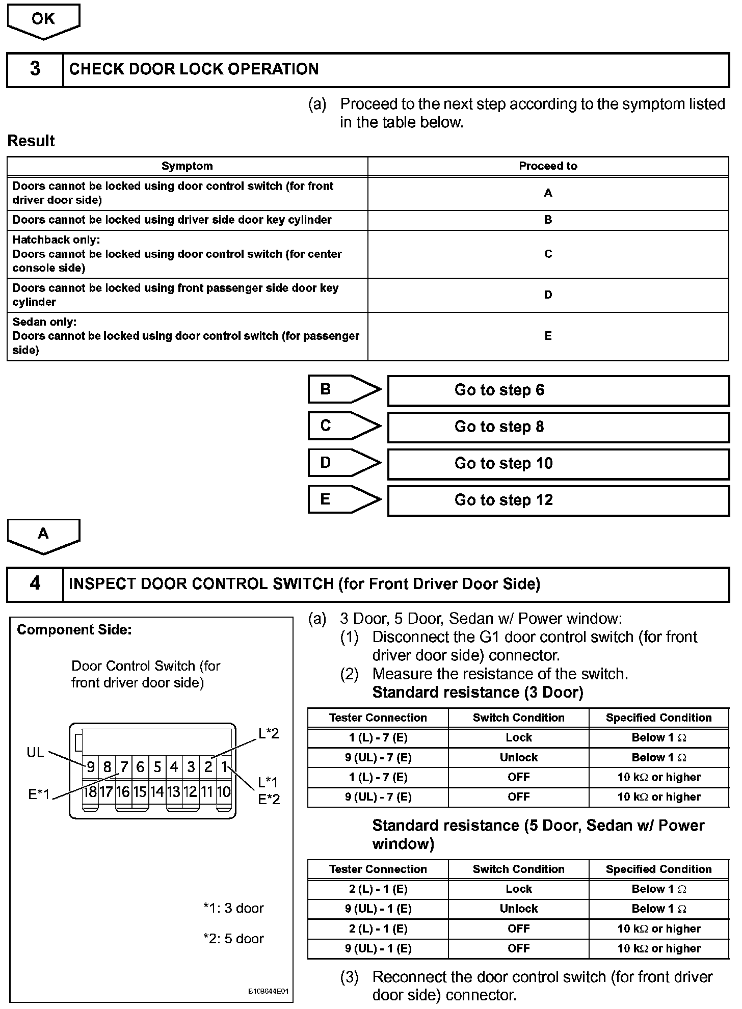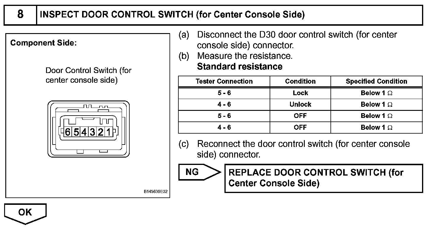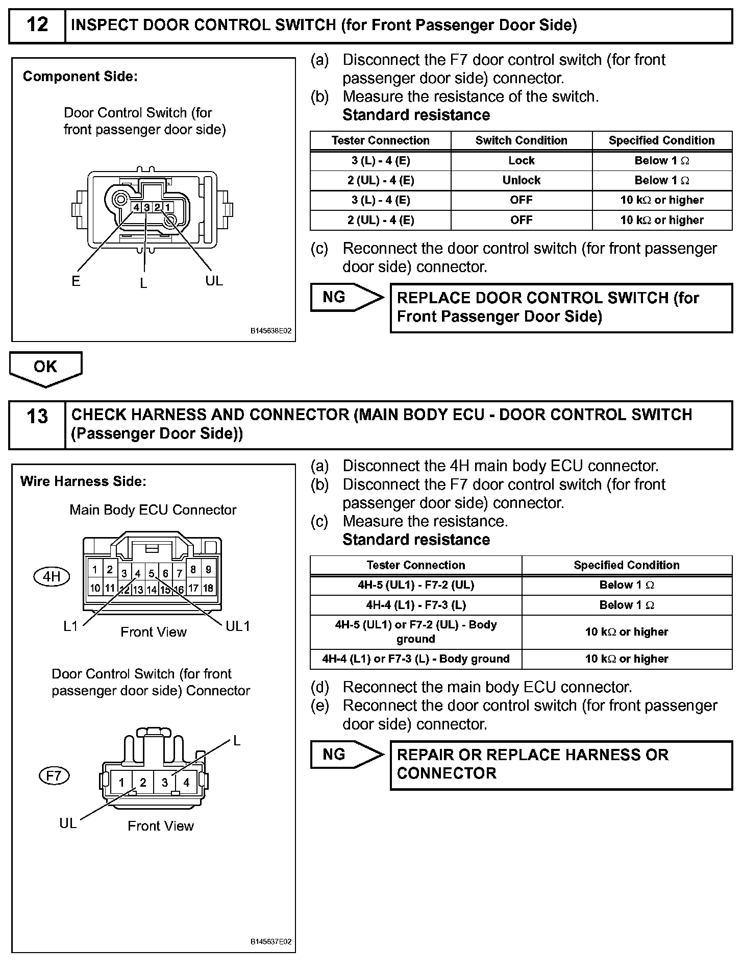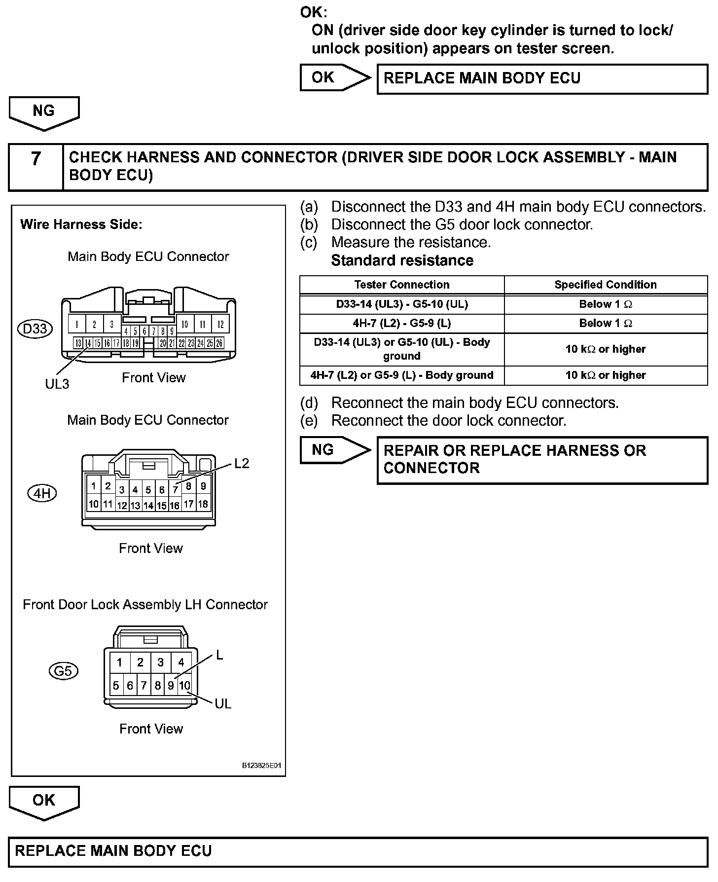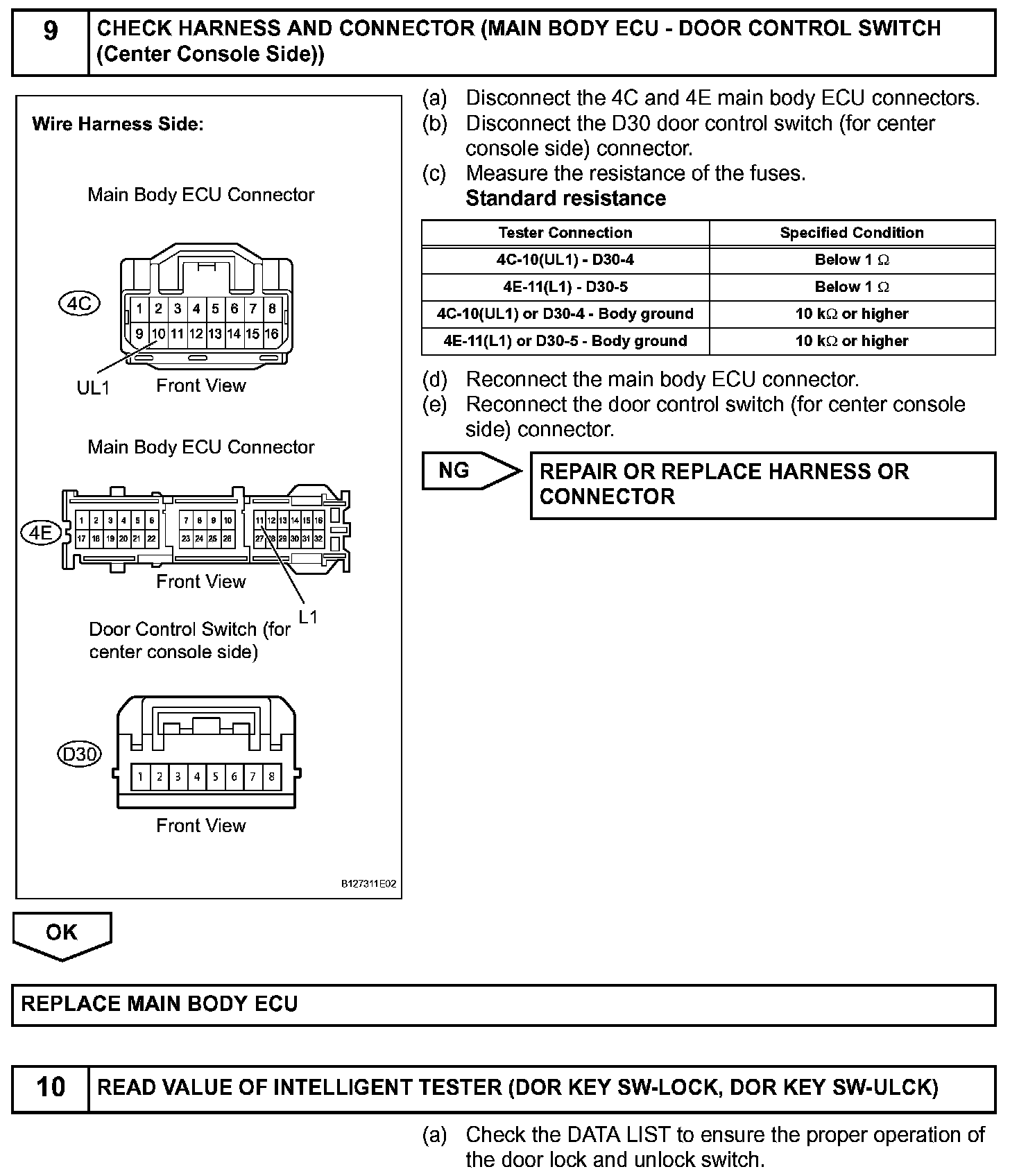The main body ECU receives switch signals from the door control switch and driver side door key cylinder, and activates the door lock motor on each door accordingly.