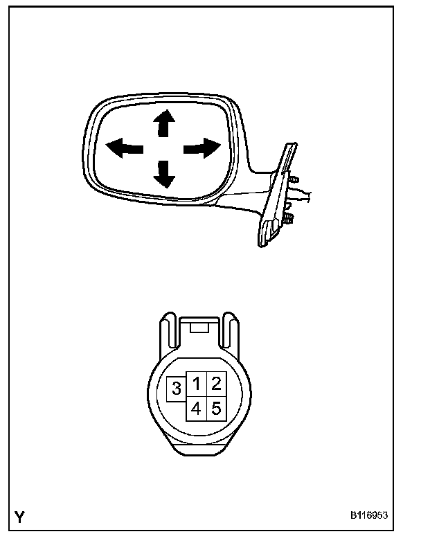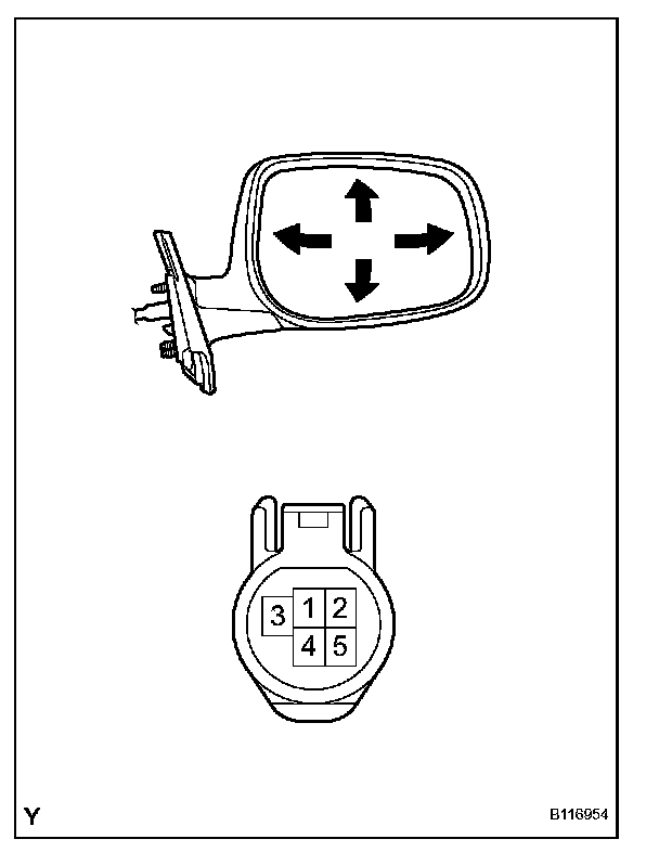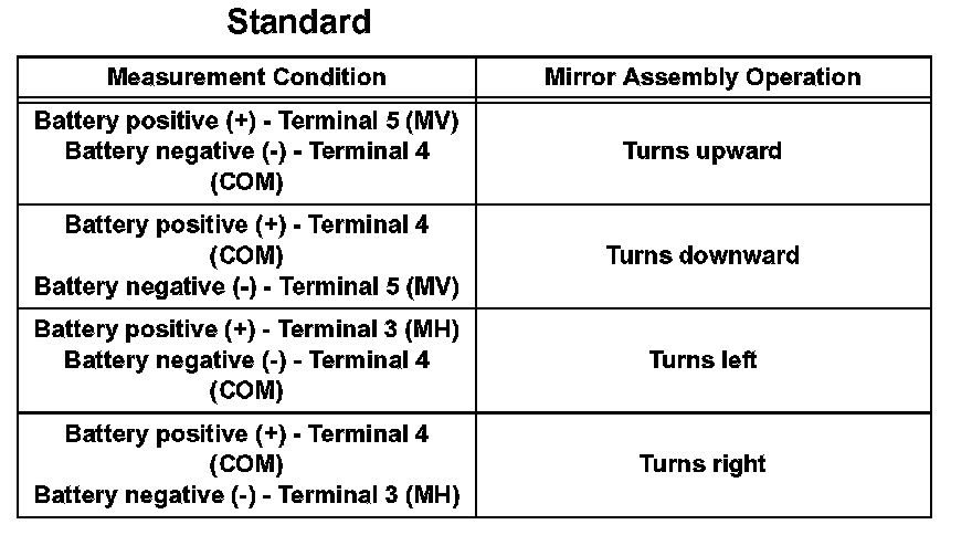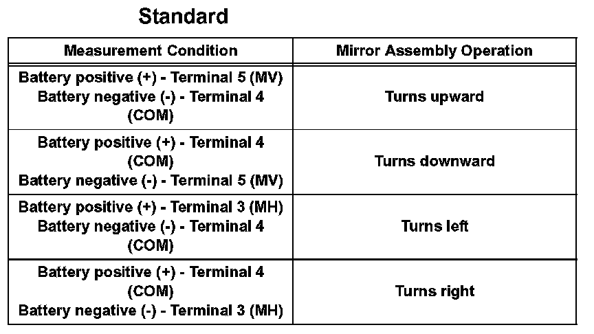 1. Apply battery voltage to the outer rear view mirror and check the operation of the outer rear view mirror.