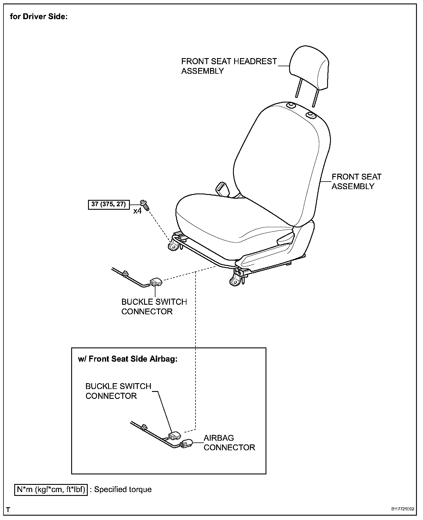 Torque: 37 N.m (375 kgf.cm, 27 ft.lbf)