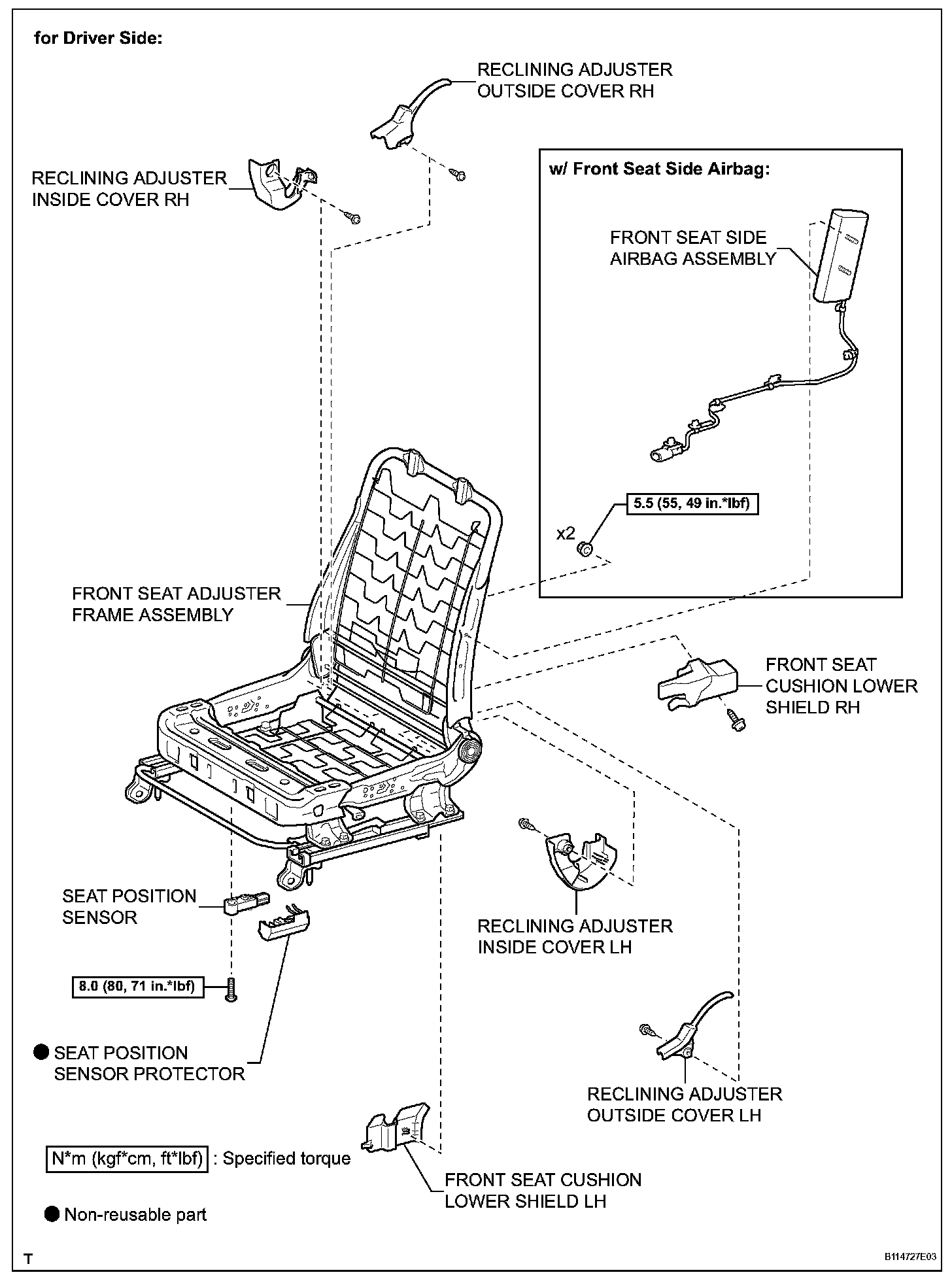 NOTICE: Always use "Torx" socket wrench E10 when installing the front seat.