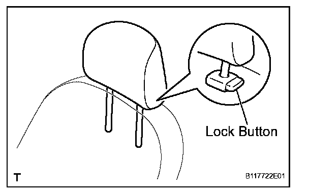 a. Push in the lock buttons of the front seat headrest support and remove the front seat headrest.