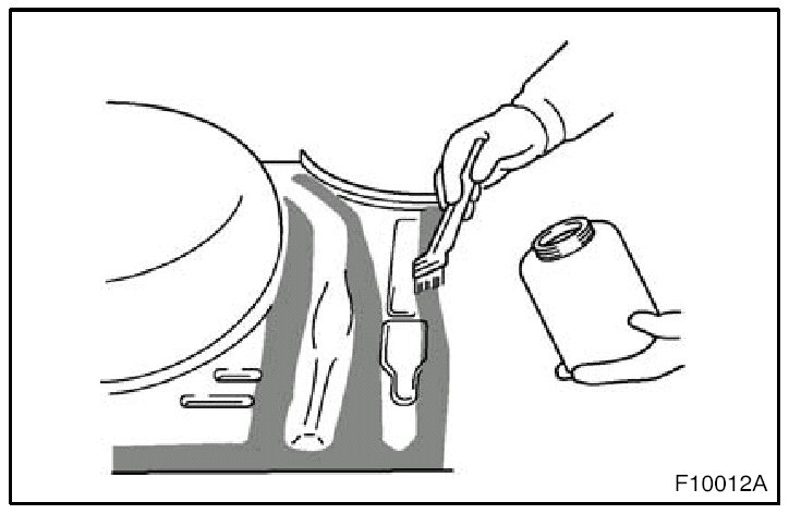 1. To prevent corrosion and protect the body from damage by flying stones, etc., apply anti-chipping paint to the rocker panel, wheel arch areas, balance panel, etc.
