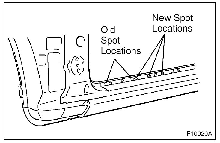 2. Plug welding should be done with a MIG (Metal Inert Gas) welder. Do not gas weld or braze panels at areas other than specified.