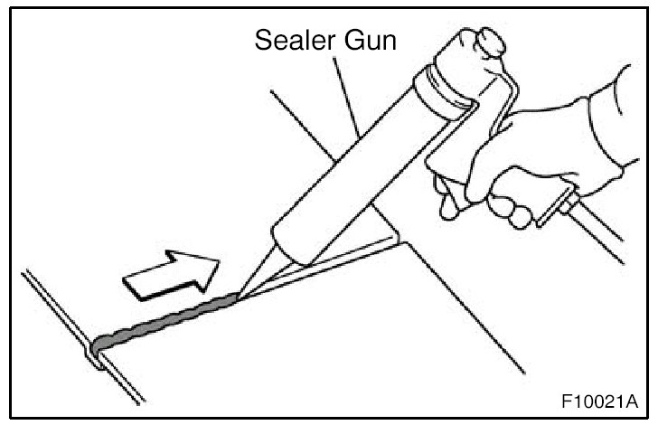 1. For water-proofing and anti-corrosion measures, always apply the body sealer to the body panel seams and hems of the doors, hood, etc.