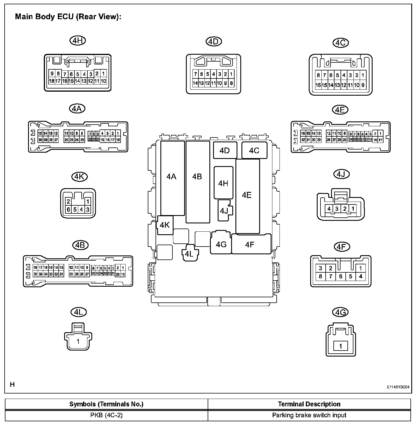 Terminals Of Control Module/Pinouts-Main Body ECU (Rear View):