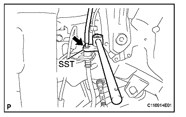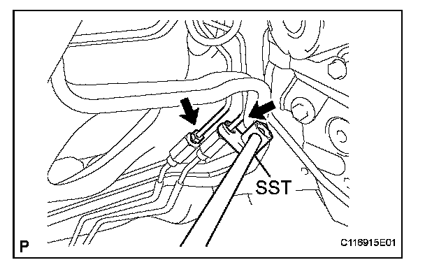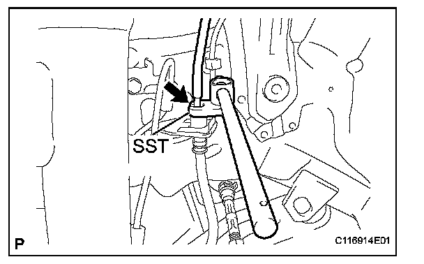 Torque: for use without SST 15 Nm (155 kgf.cm, 11 ft. lbs.) for use with SST 14 Nm (143 kgf.cm, 10 ft. lbs.)