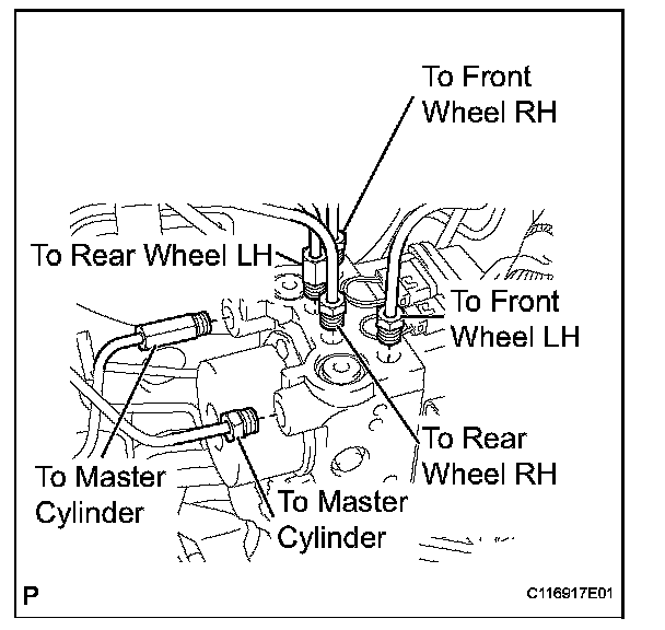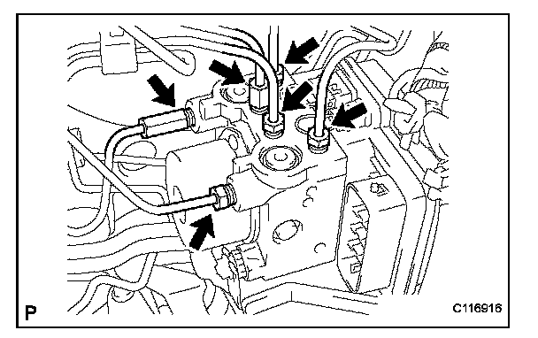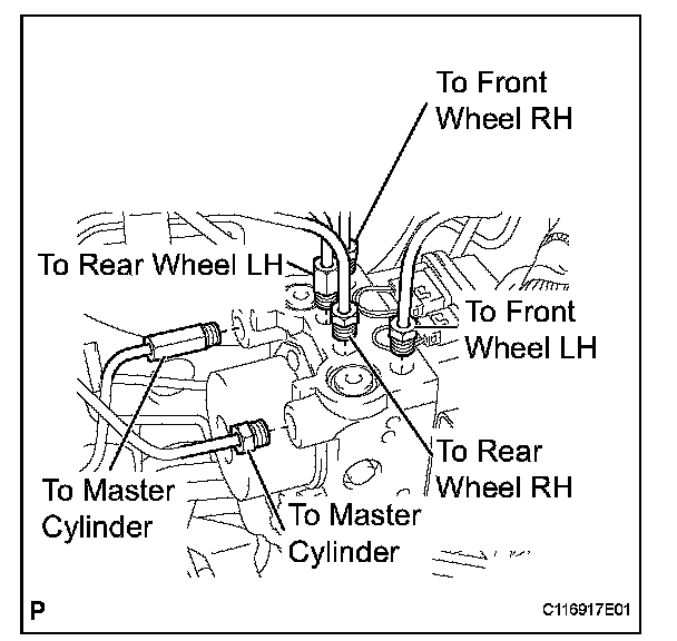 d. Using SST, install each brake tube into the correct position of the actuator, as shown in the illustration.