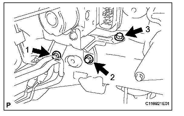 b. Tighten the 3 bolts in the sequence shown in the illustration.