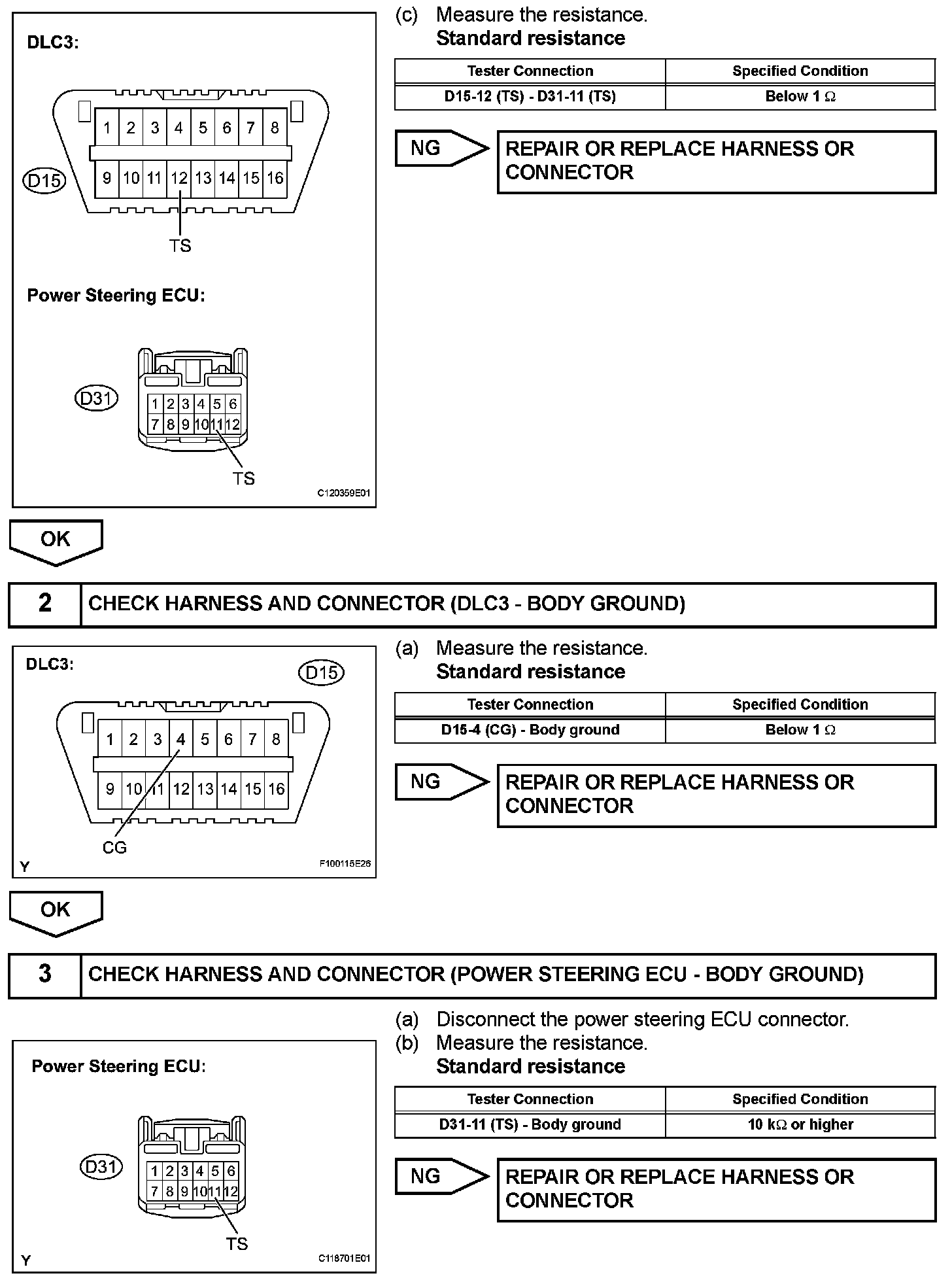 Transition to sensor check mode can be performed by connecting terminals TS and CG of the DLC3 and turning the ignition switch from off to on.