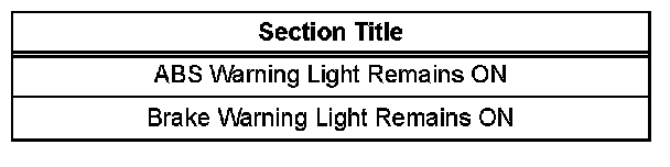 HINT: If the warning lights do not illuminate, confirm whether the bulbs have burned out, and also check for CAN communication system DTCs, since the skid control ECU and combination meter are connected by the CAN communication line. If the warning light remains on, perform the relevant troubleshooting procedures. The relevant troubleshooting procedures are described in the sections listed in the table.