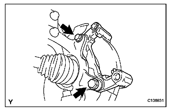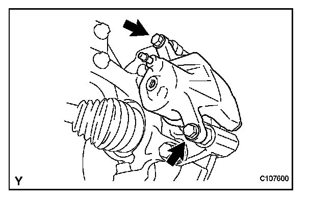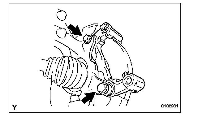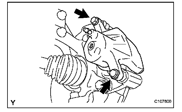 (a) Remove the 2 bolts and remove the disc brake cylinder mounting from the steering knuckle.