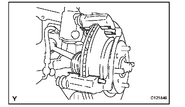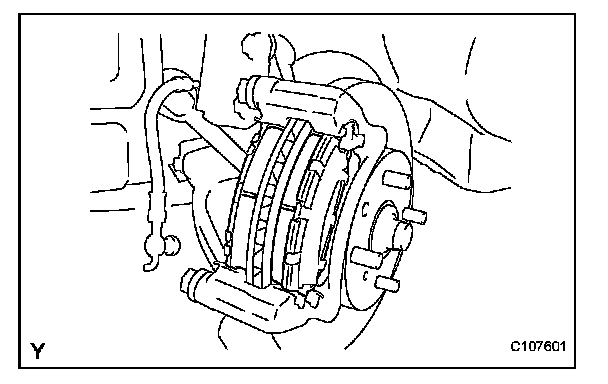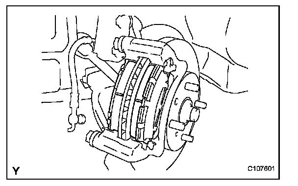 (a) Remove the 2 disc brake pads from the disc brake cylinder mounting.