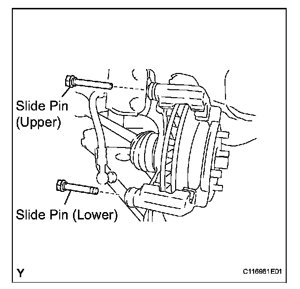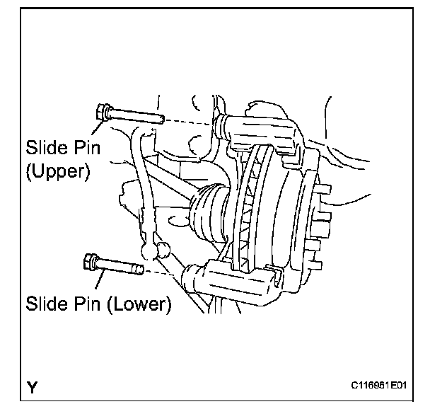 (a) Remove the slide pin (upper) and slide pin (lower) from the disc brake cylinder mounting.