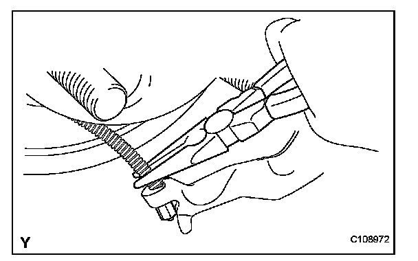 (f) Using needle-nose pliers, separate the parking brake cable.