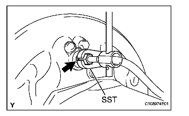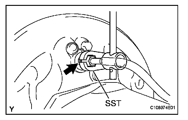 (a) Using SST, separate the brake tube from the rear wheel brake cylinder.