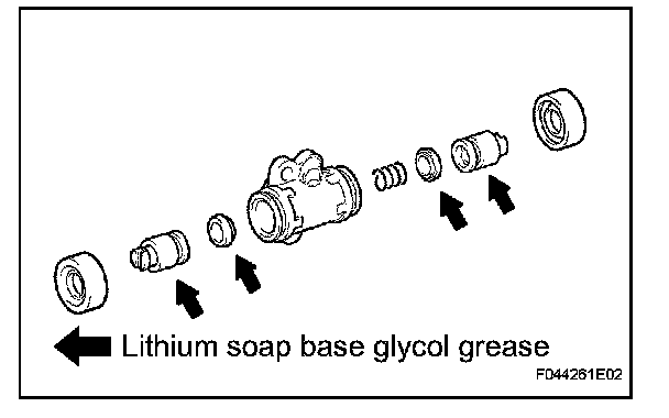 (a) Apply lithium soap base glycol grease to 2 new wheel cylinder cups and the 2 pistons.