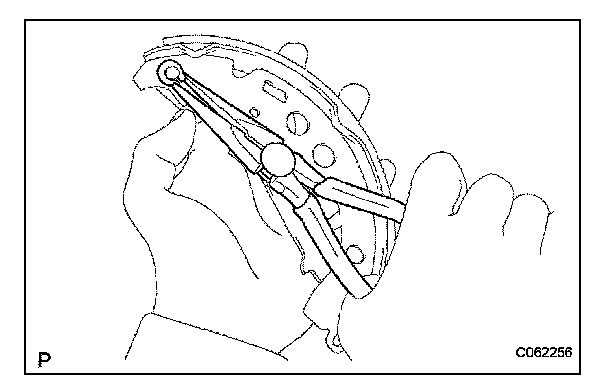 (a) Using needle-nose pliers, install the parking brake shoe lever with a new C-washer.