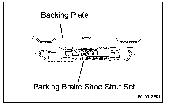 (e) Install the parking brake shoe strut set as shown in the illustration.