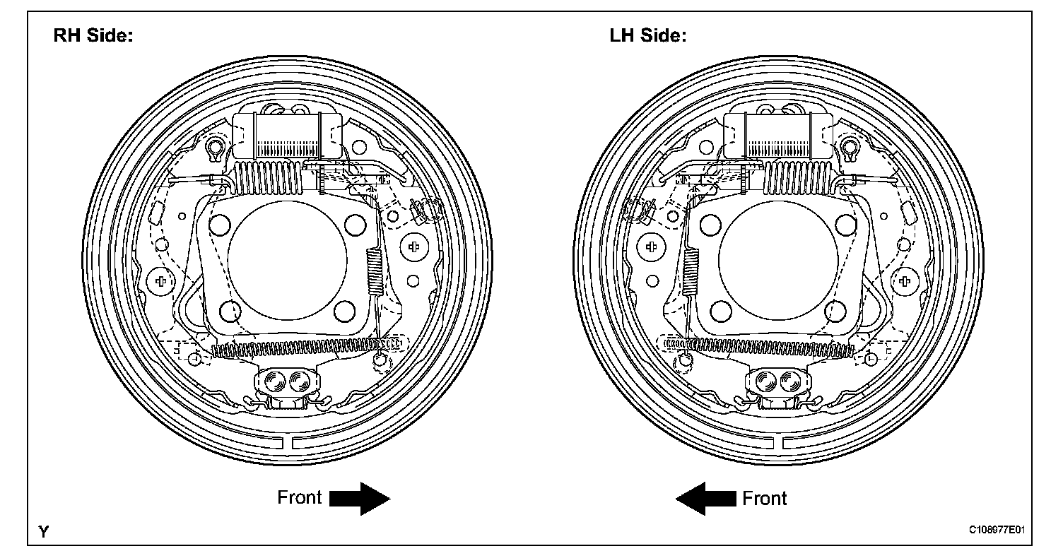 NOTICE: There should be no oil or grease adhering to the friction surfaces of the shoe lining or the drum.