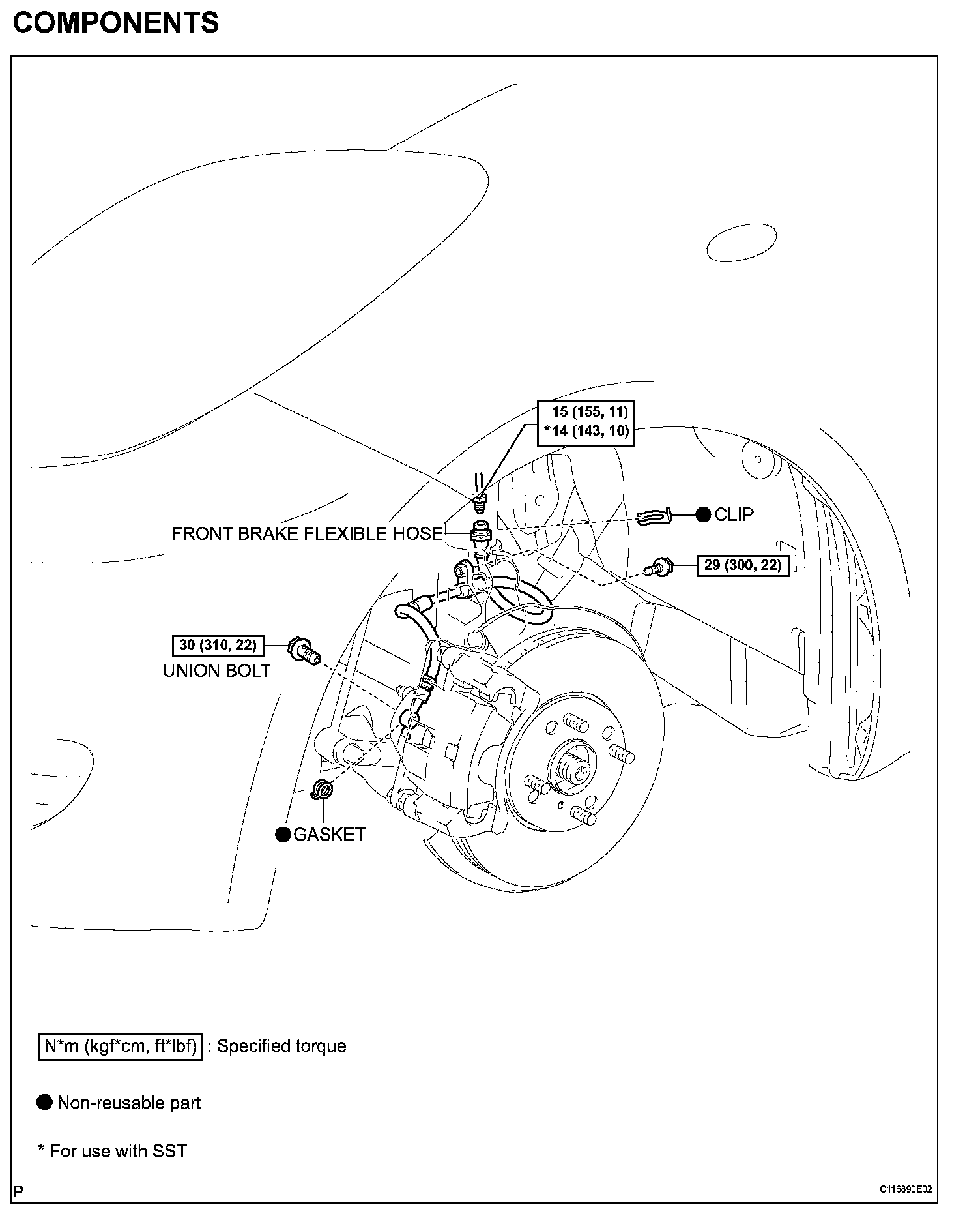 FRONT BRAKE FLEXIBLE HOSECOMPONENTS: