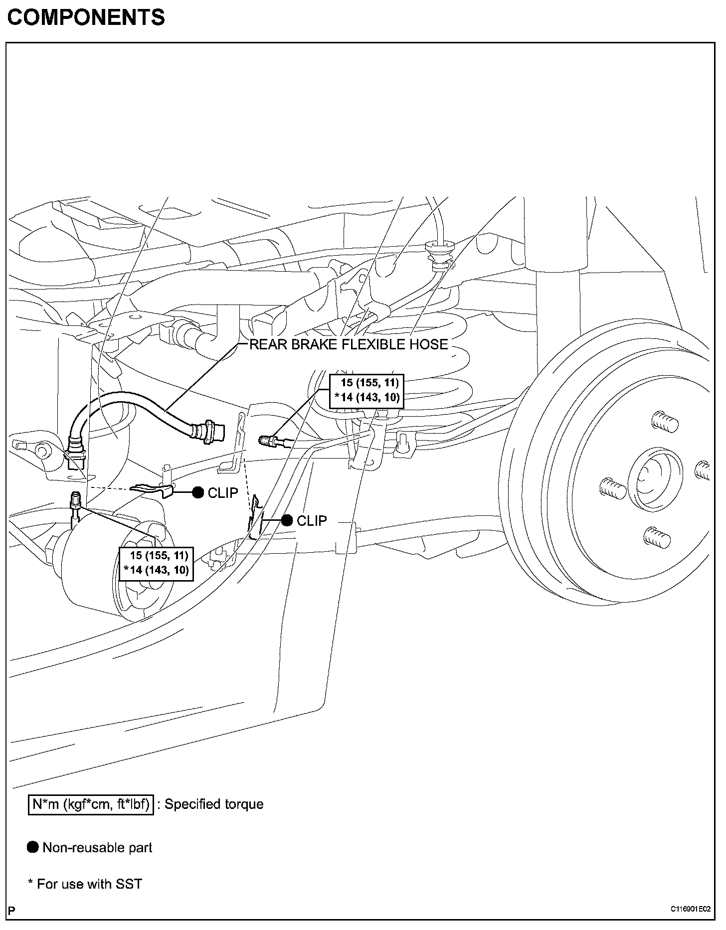 REAR BRAKE FLEXIBLE HOSECOMPONENTS: