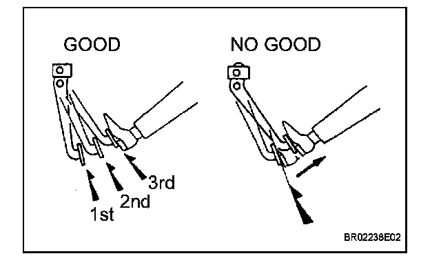 ^ If the pedal can be depressed to the floor on the 1st time, but cannot be depressed as far on the 2nd or 3rd times, the booster is airtight. If not, inspect the vacuum check valve.