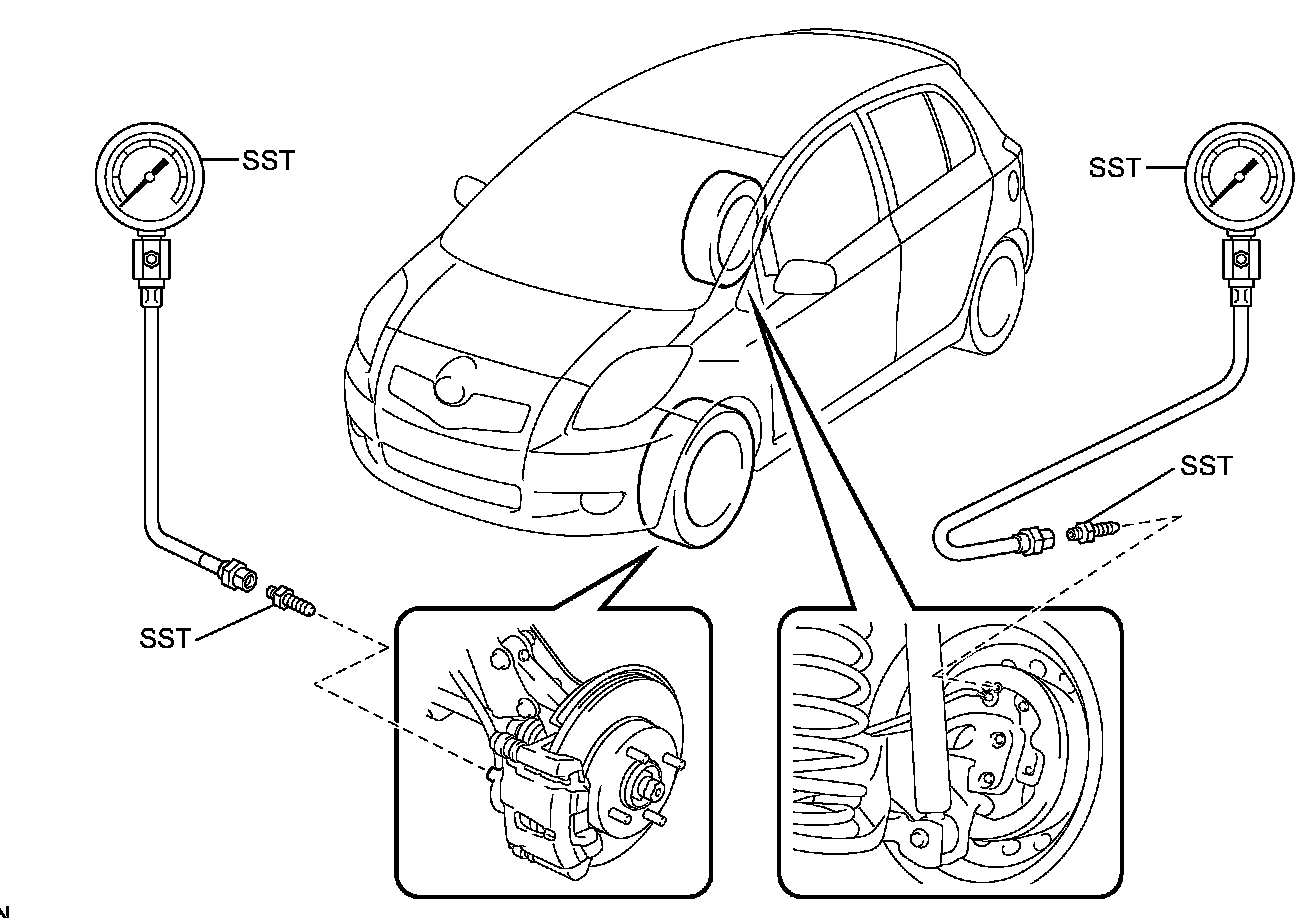 (2) Raise the front brake caliper pressure and inspect the rear wheel cylinder pressure.