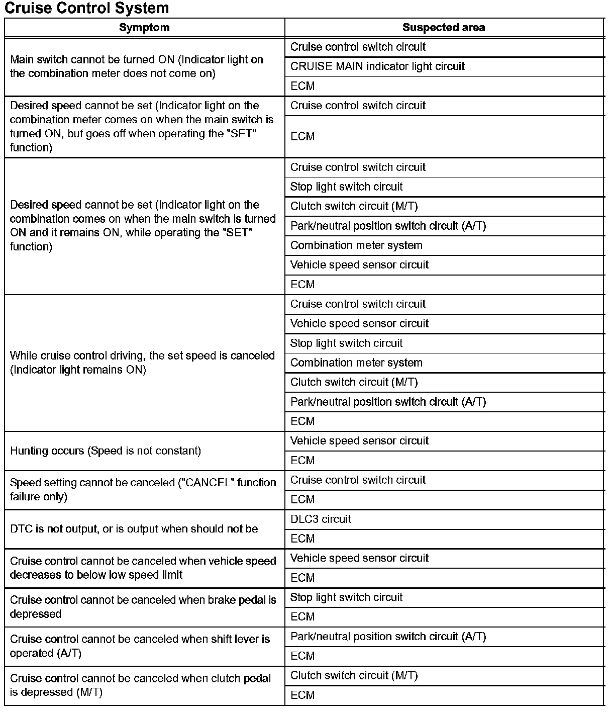 PROBLEM SYMPTOMS TABLEHINT: Use the table given to help determine the causes of the problem symptom. The potential cases of the symptoms are listed in order of probability in the "Suspected Area" column of the table. Check each symptom by checking the suspected areas in the order they are listed. Replace parts as necessary.