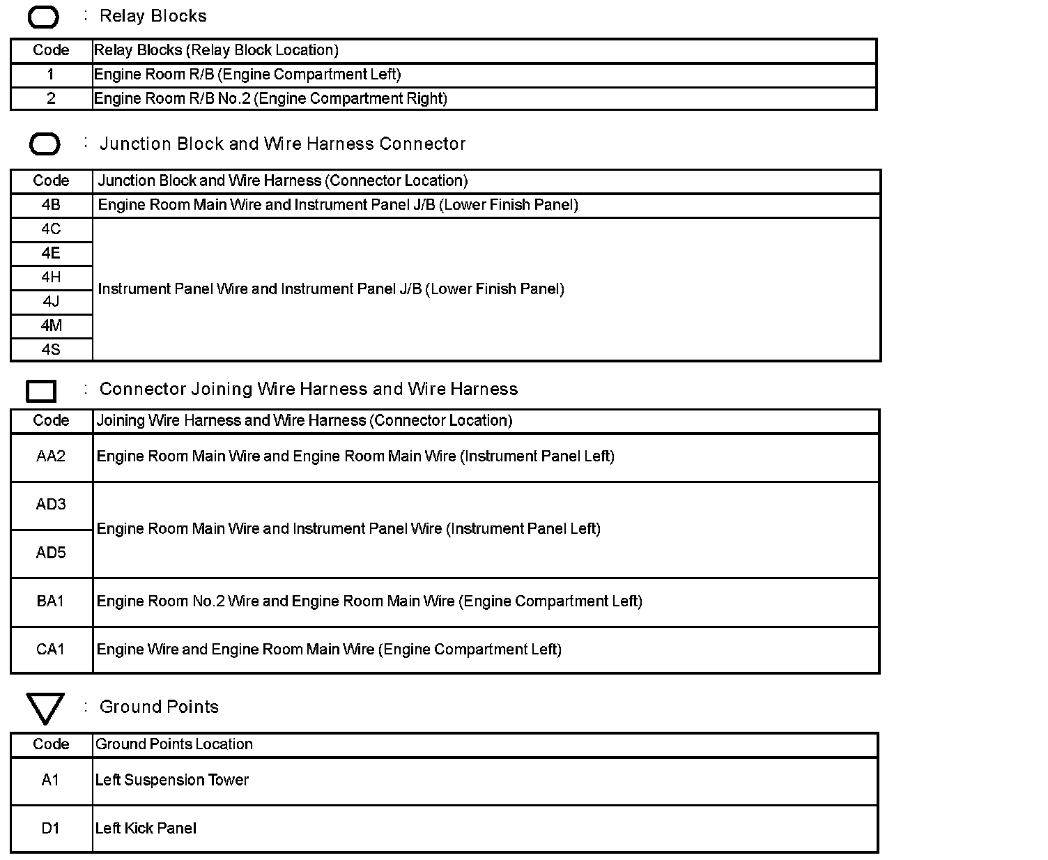 Locations: The locations of components, connectors, ground points, and splices referred to within these diagrams can be found at Vehicle Locations. Locations
