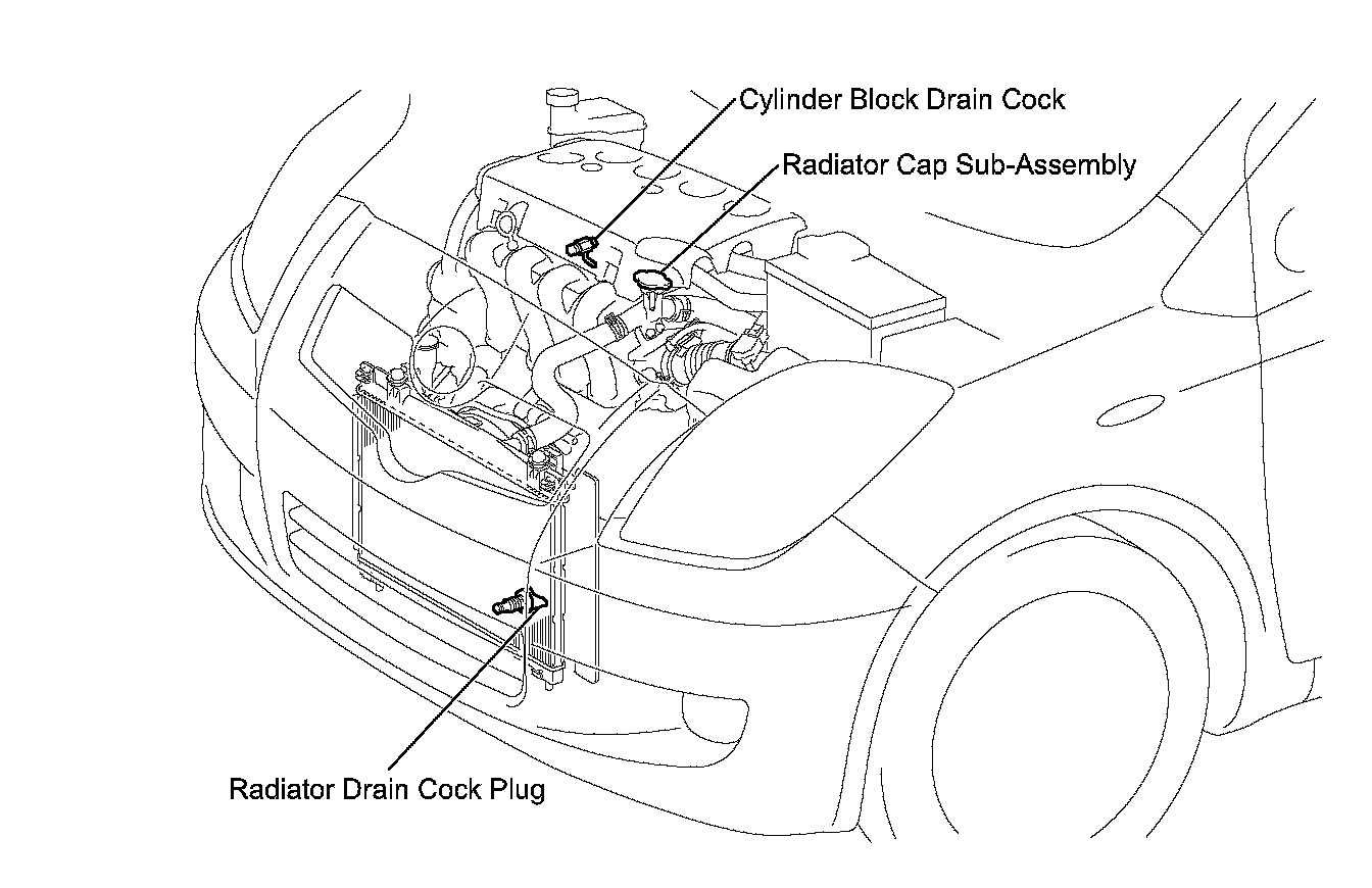 NOTICE: To avoid the danger of being burned, do not remove the radiator cap sub-assembly while the engine and radiator assembly are still hot. Thermal expansion will cause hot engine coolant and steam to blow out from the radiator assembly.