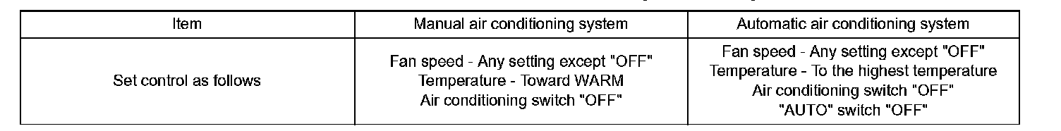 (1) Set the air conditioning as follows while warming up the engine.