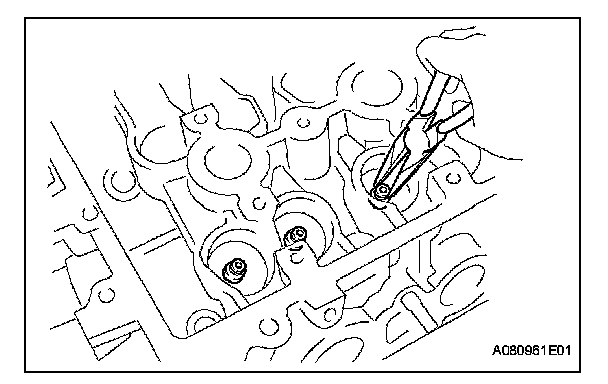 HINT: Keep the valves, valve springs, spring seats and spring retainers in the correct order so that they can be returned to their original locations when reassembled.