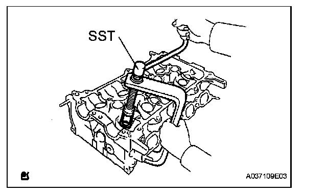 (a) Using SST, compress the valve spring and remove the 2 retainer locks, retainer and valve spring.